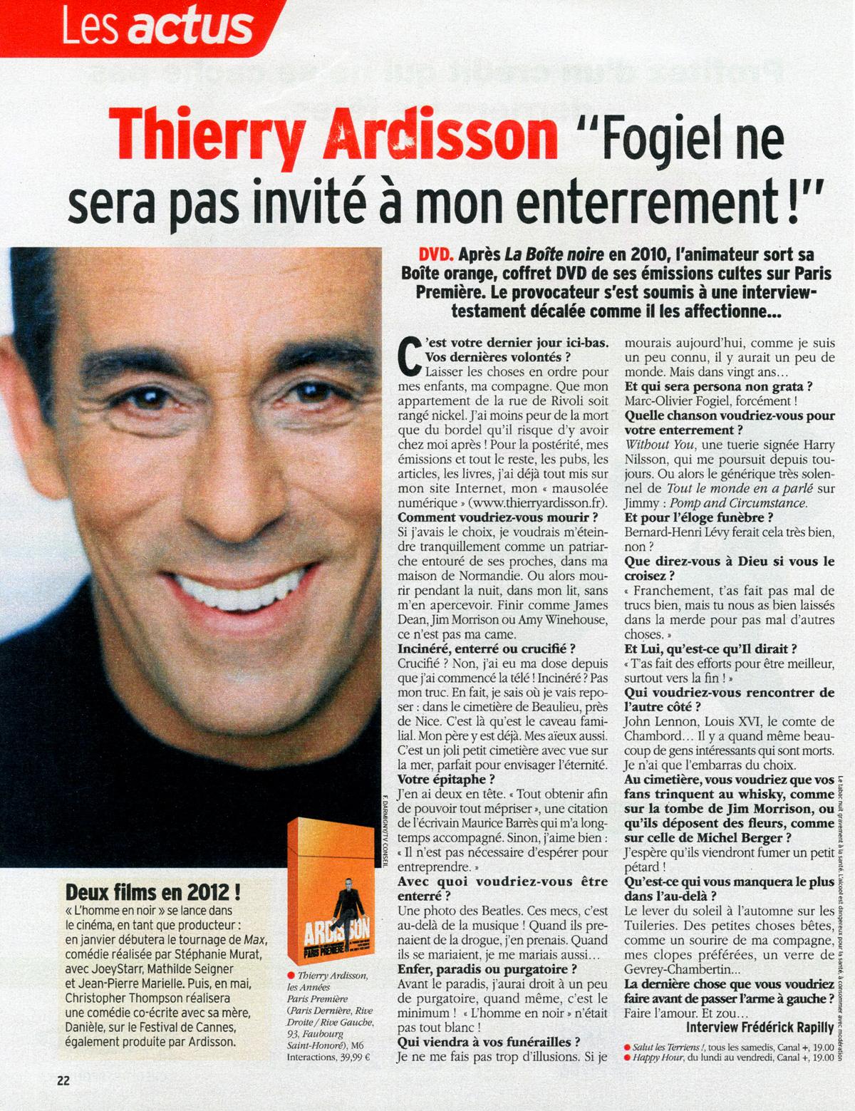 Télé7jours, "Fogiel ne sera pas invité à mon enterrement", dec 2011
