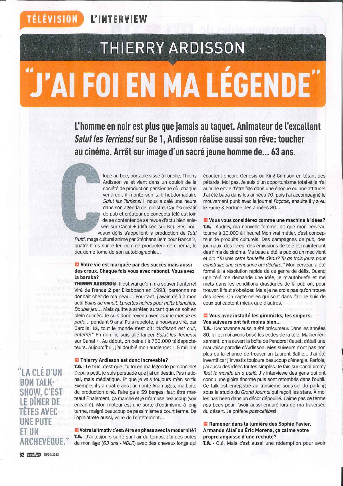 Télémoustique, ”j'ai foi en ma légende”, avril 201