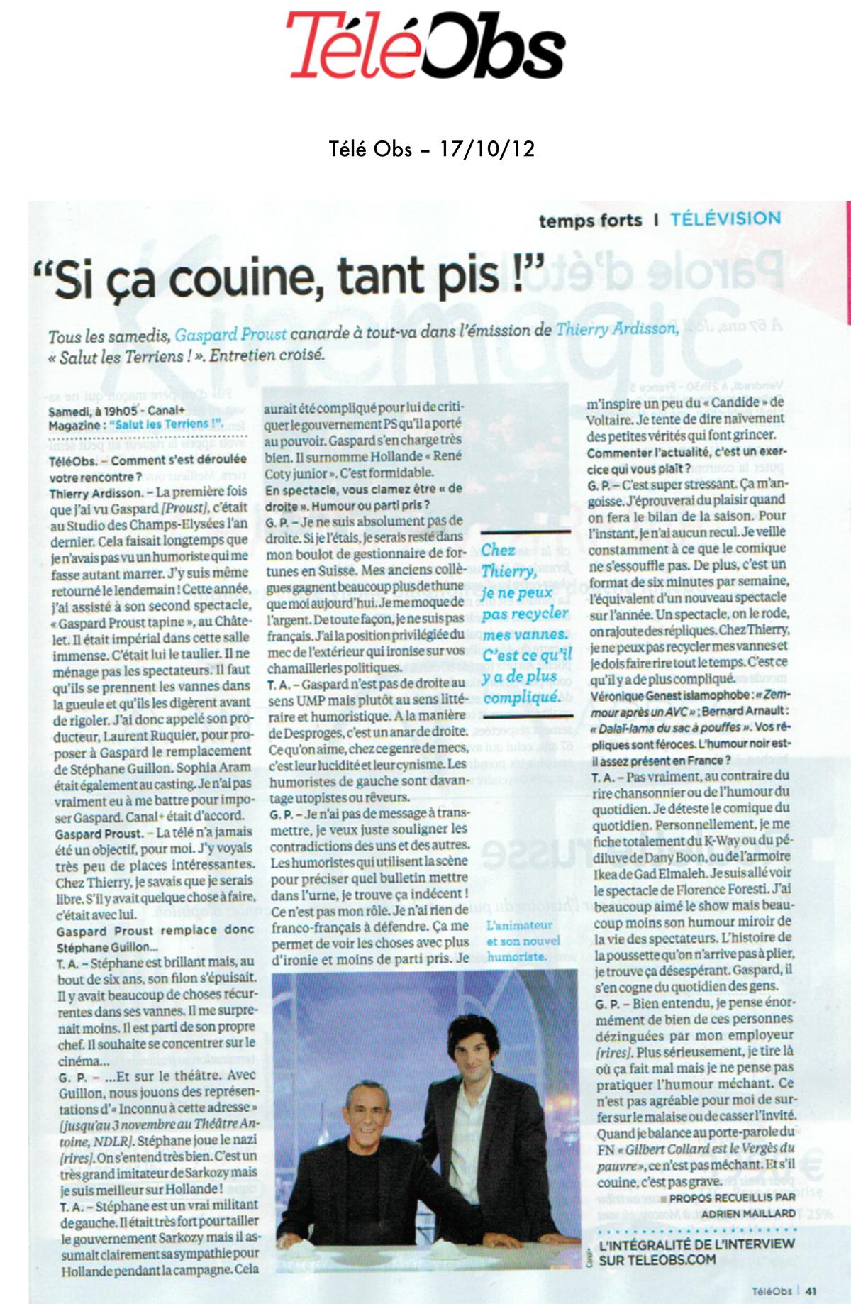 TéléObs - Si ça couine, tant pis!