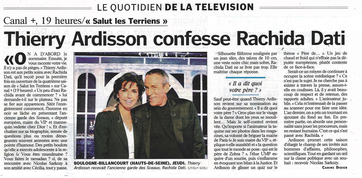 Thierry Ardisson confesse Rachida Dati, Le Parisien