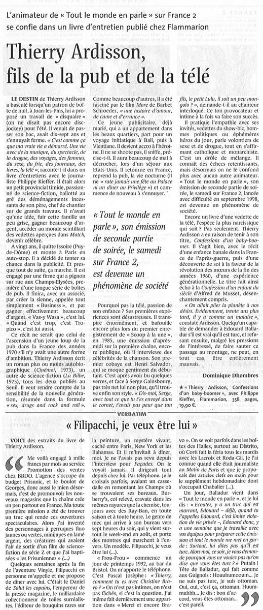 Thierry Ardisson, fils de Pub et de la télé, Le Monde