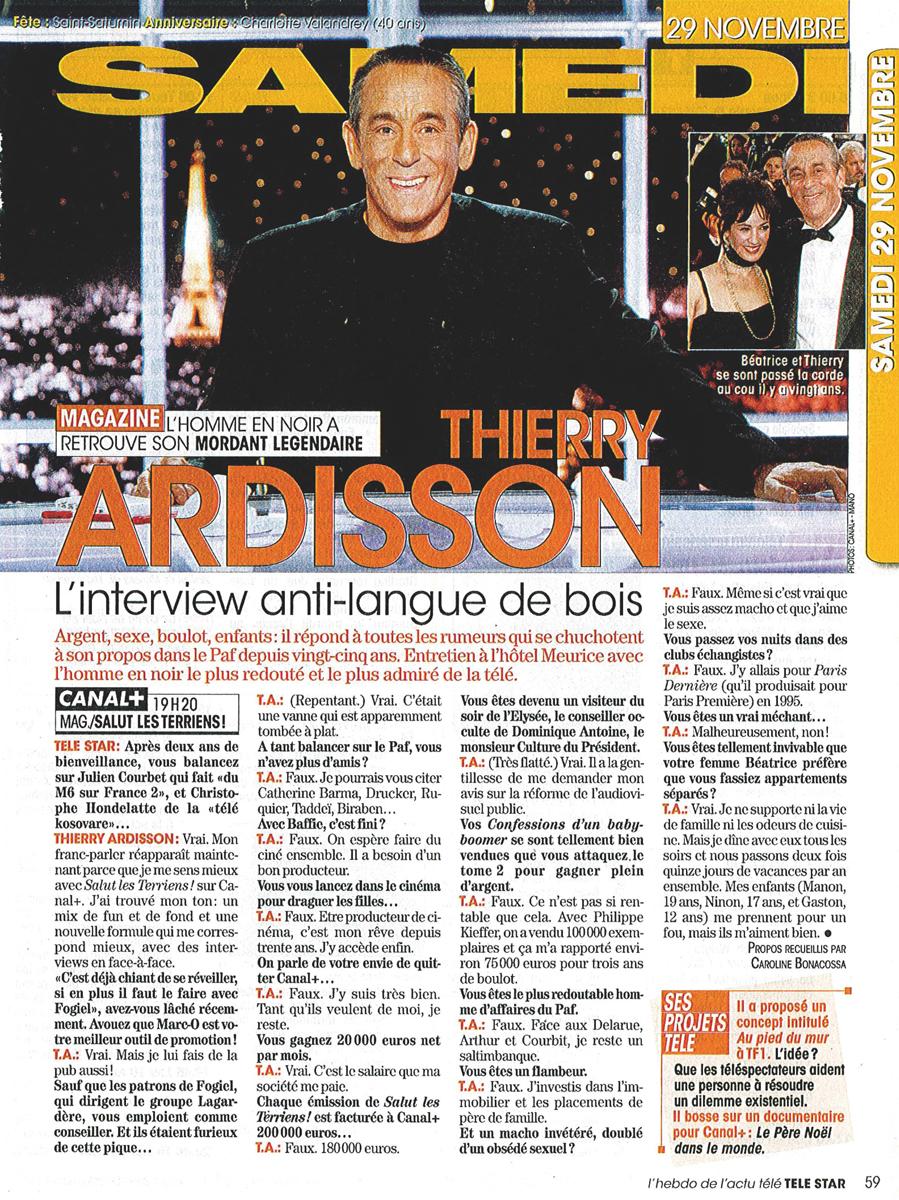 Thierry Ardisson, L'interview anti-langue de bois, TéléStar