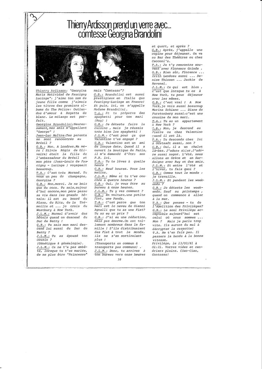 Interview de la comtesse Georgina Brandolini.