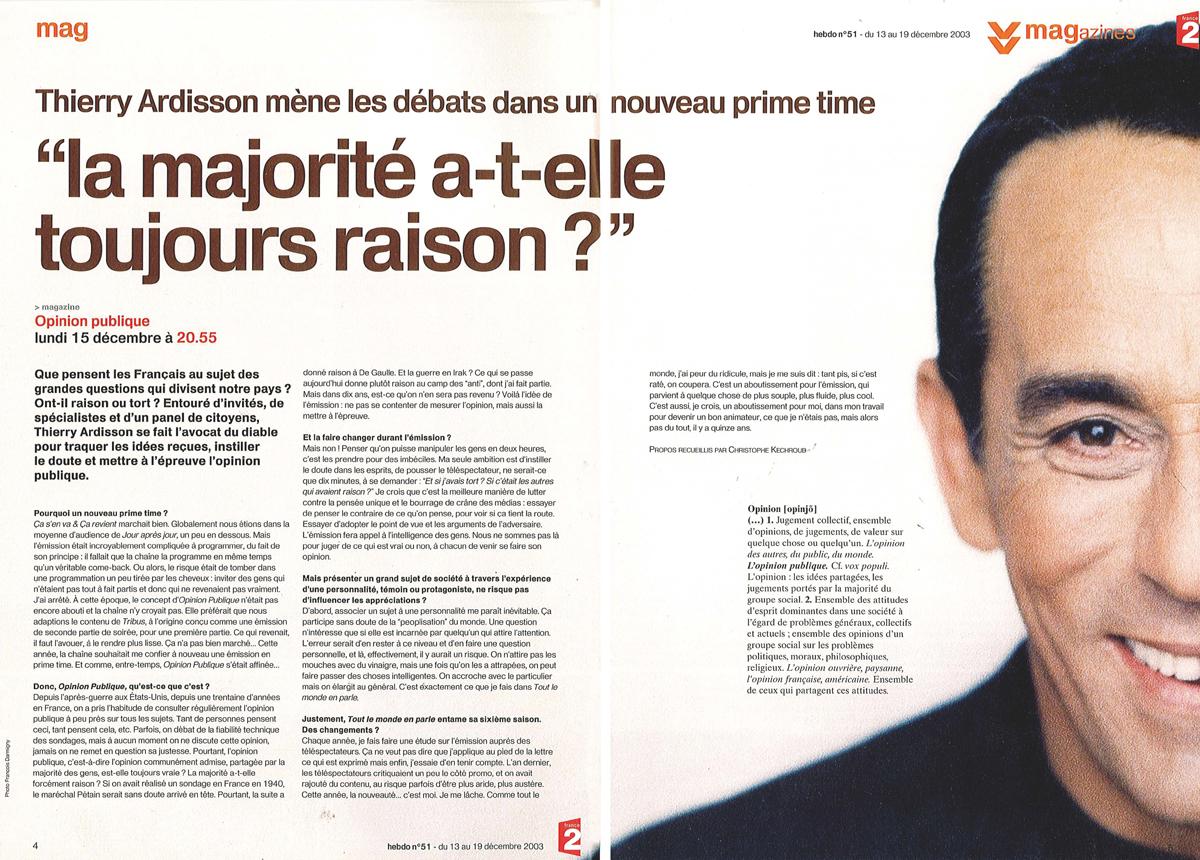 Thierry Ardisson remet en question l'Opinion publique, Hebdo France 2